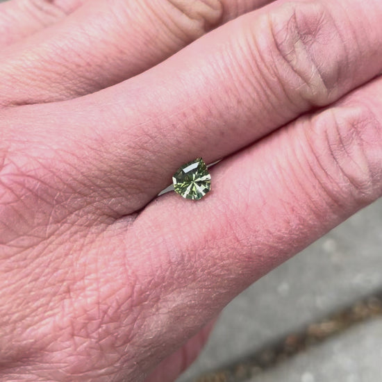 A sparkling geometric pear shaped sapphire.