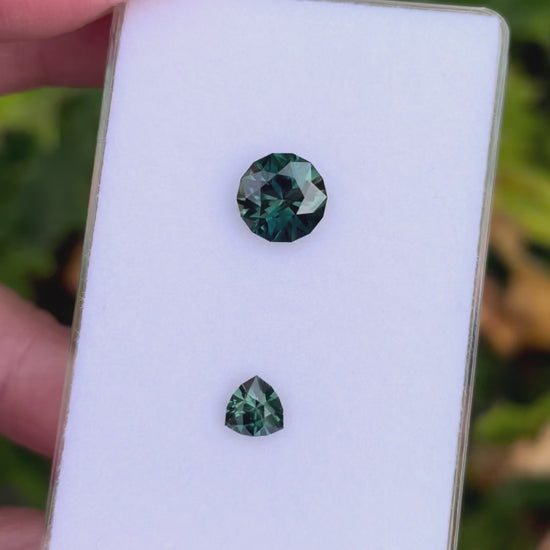 Two sapphires cut from the same piece of rough from the sapphire fields in Queensland.